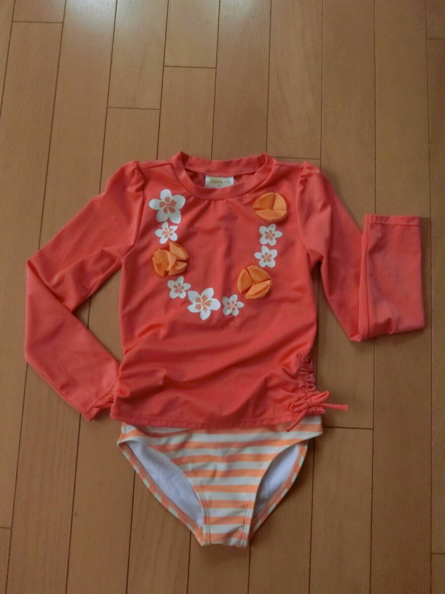 - 美品 水着 クレイジー8 Crazy8 セパレート 長袖 ラッシュガード 110 5T 4歳 5歳 オレンジ 白 ホワイト ボーダー お花 かわいい 女の子