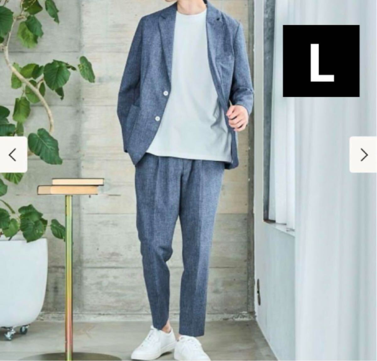 - ビームス デニムプリント シアサッカー セットアップスーツ ブルー L