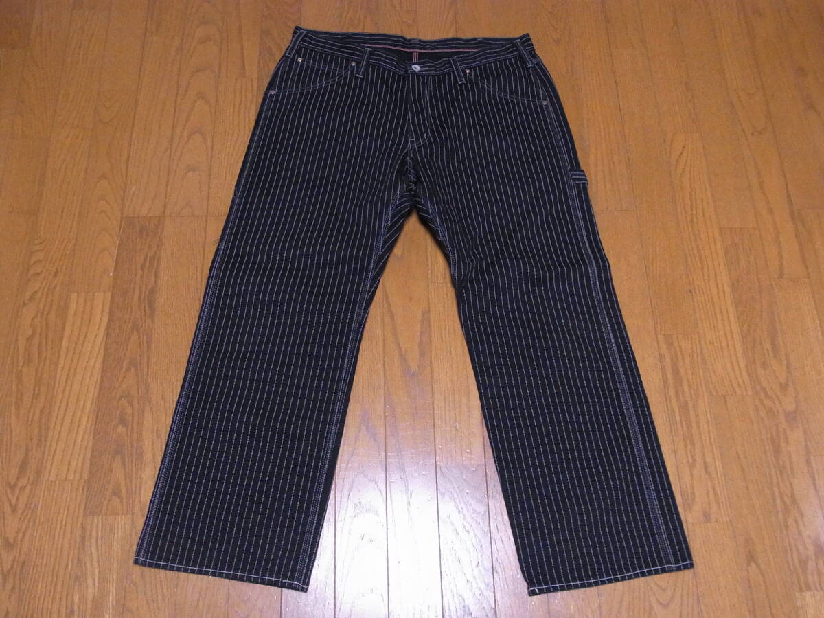 - 257-127/良品/IRON HEART/アイアンハート/ウォバッシュストライプ/ペインターパンツ/W38/ブラック