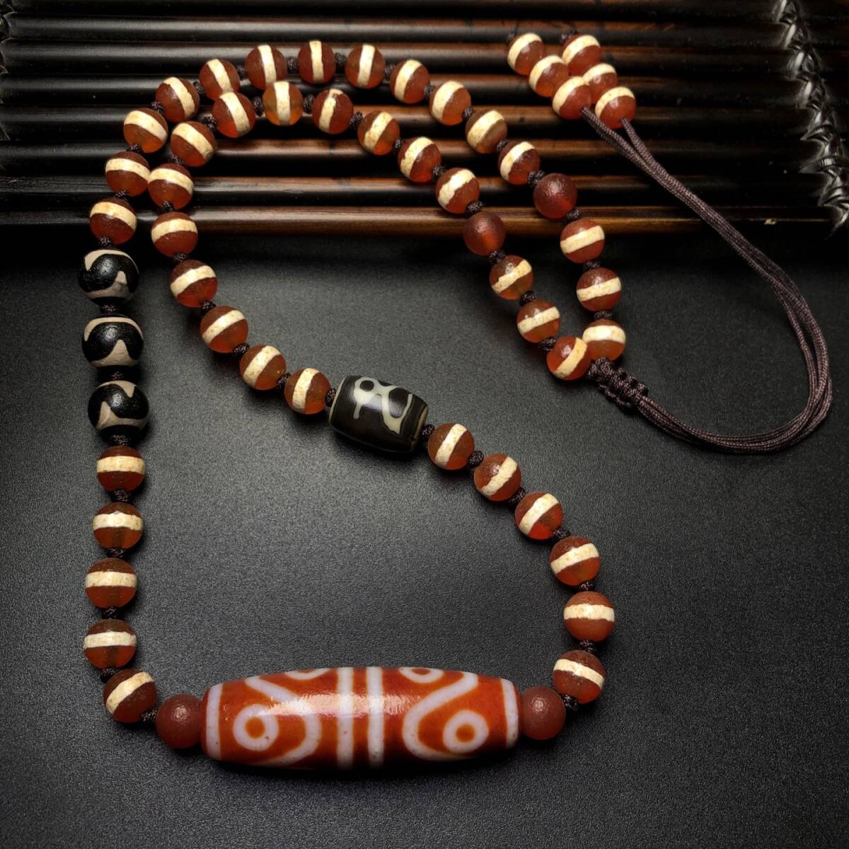 - 清 古瑪瑙彫 紅肉 一線薬師 天珠項鏈 仏珠 瑪瑙天珠 高油 項鏈 箱付 置物擺件 時代物 古董品 骨董 旧家藏出 唐物 中国古玩 古美術品