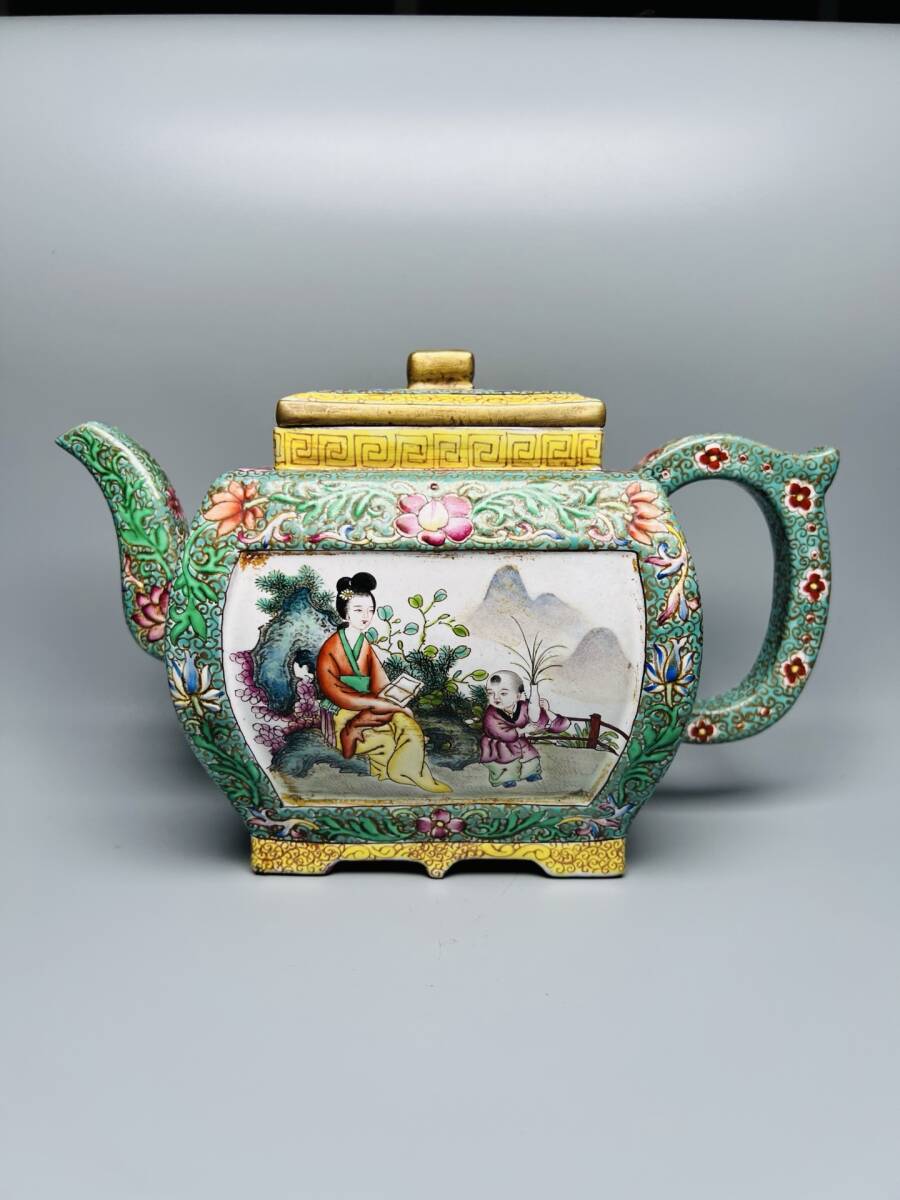 > 8~QN6069 人間国宝 中国磁器 紫砂壺 茶道具『宜興紫砂原鉱はすべて手作り紫砂琺瑯彩です』骨董陶磁器 古代工芸品 陶芸 精美彫 置物 收藏品