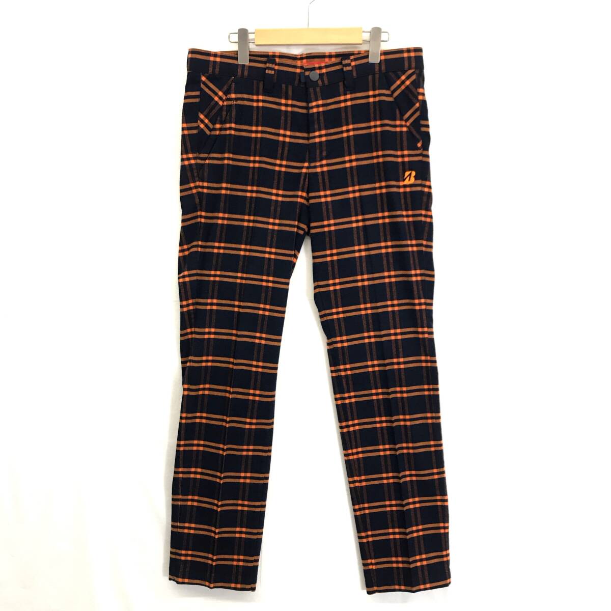 - JZ0626★BRIDGESTONE GOLF : B-2000 ストレッチロングパンツ★88★オレンジ系 チェック柄 起毛