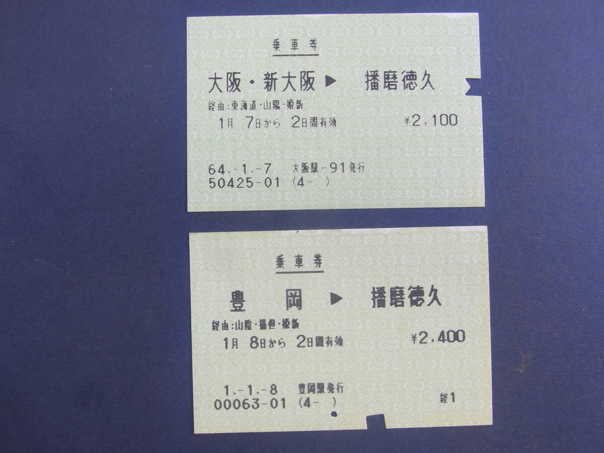 - 姫新線 昭和最終日・平成初日発行日切符 「播磨徳久ゆき」