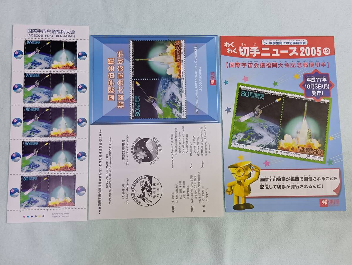 国際宇宙会議福岡大会 IAC2005 FUKUOKA JAPAN H17 切手シート1枚と解説書とわくわく切手ニュース W
