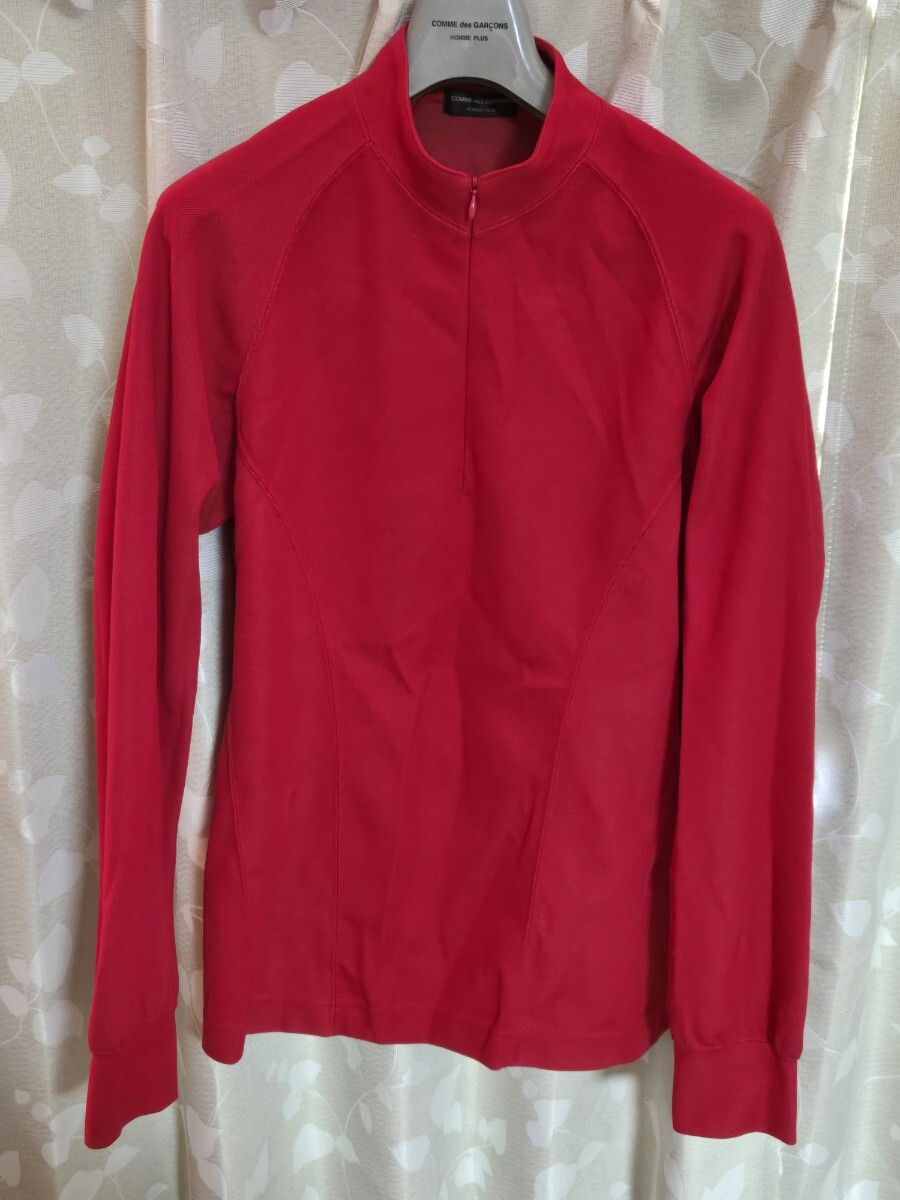 > COMME des GARCONS HOMME PLUS コムデギャルソン オム プリュス カーブ期 切り替え長袖Tシャツ ハーフジップ 赤