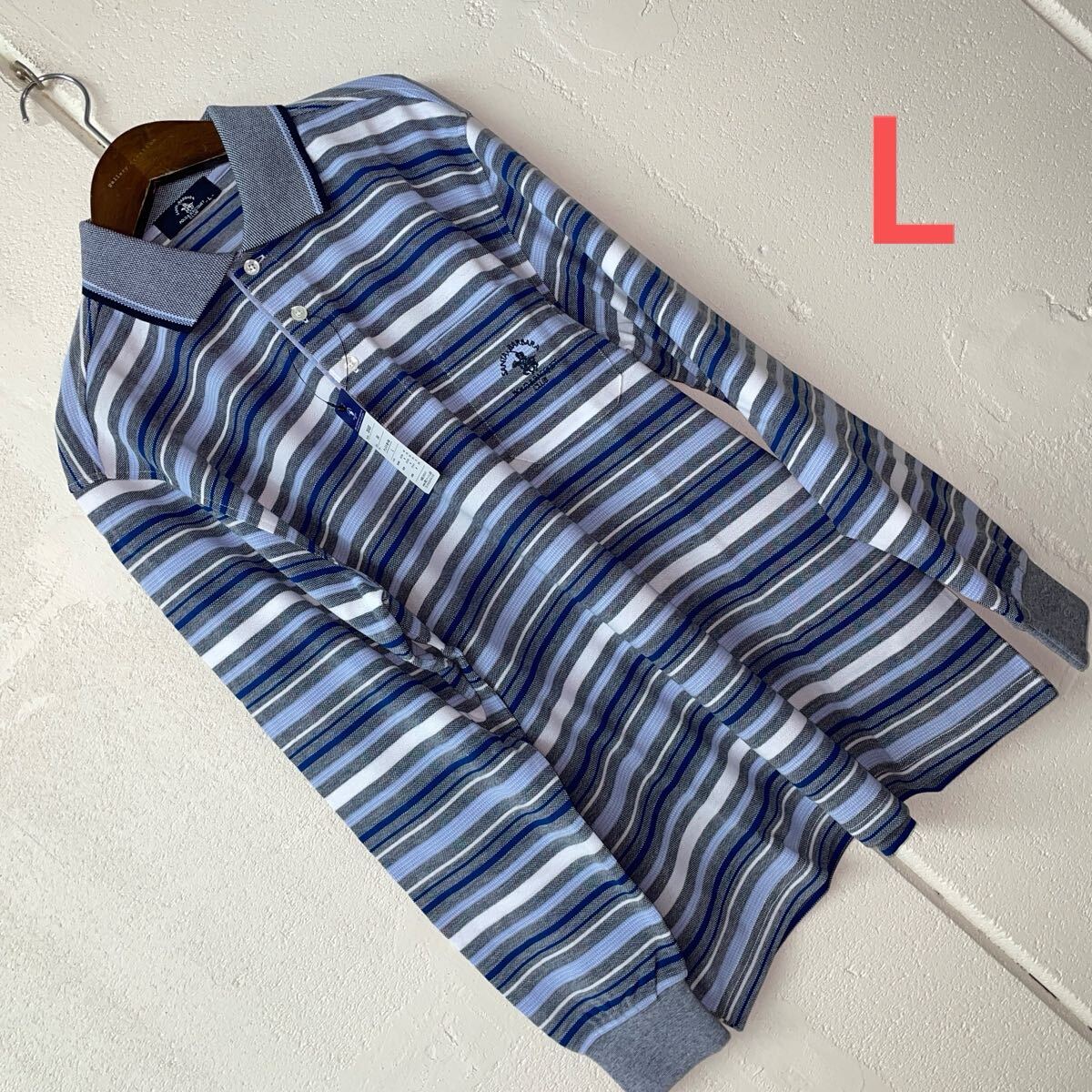 - Lサイズメンズサンタバーバラポロアンドラケットクラブ長袖ポロシャツ青