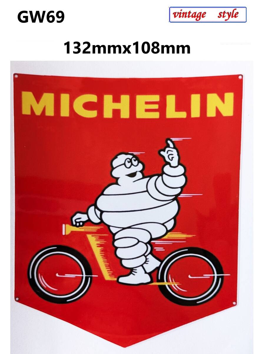 - GW69-06 ヴィンテージスタイル MICHELIN ミシュラン ビバンダム タイヤ ガソリンステッカー ダメージ加工 レトロ ガレージ
