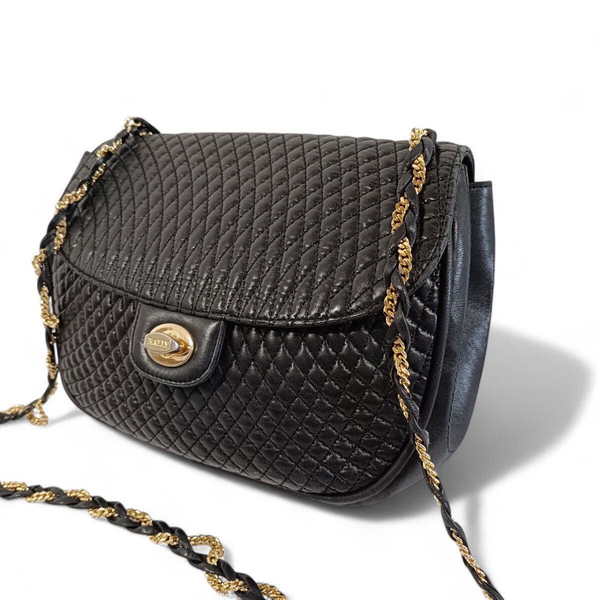 - 【美品】 正規品 バリー ショルダーバッグ キルティング 黒 レザー チェーン BALLY ブラック ターンロック ポシェット ゴールド金具