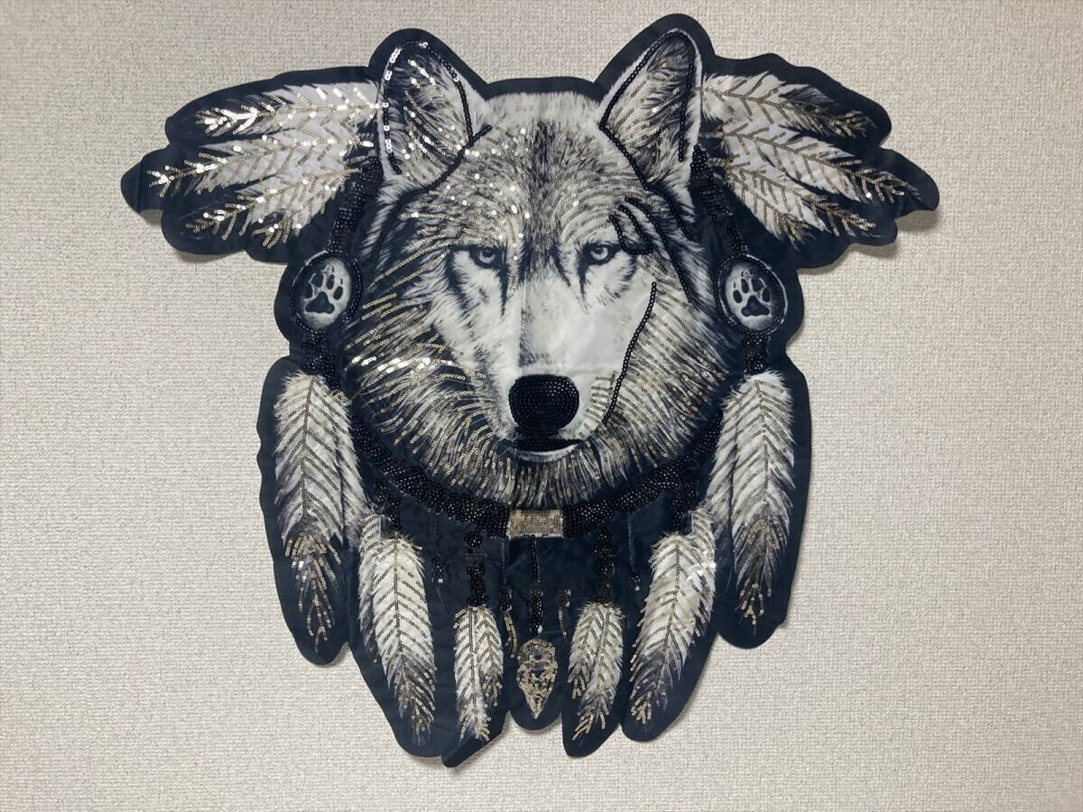 - ★送料無料★「服飾用 布製プリントワッペン 大型 狼と羽根 ジャケット/コート カスタム用」 tface-g 2