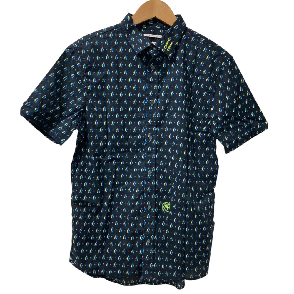 > 美品 DIESEL ディーゼル スリムフィット 総柄 プリント ショートスリーブ 半袖 シャツ L ブラック