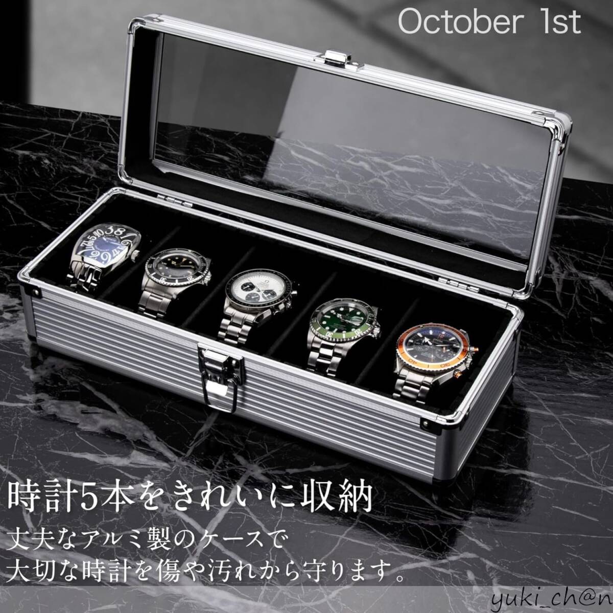 - 腕時計ケース 5本用 Watch Box アクセサリーコレクション 収納 アルミボックス メンズ 時計 持ち運び 保管 インテリア用 耐衝撃 シルバー