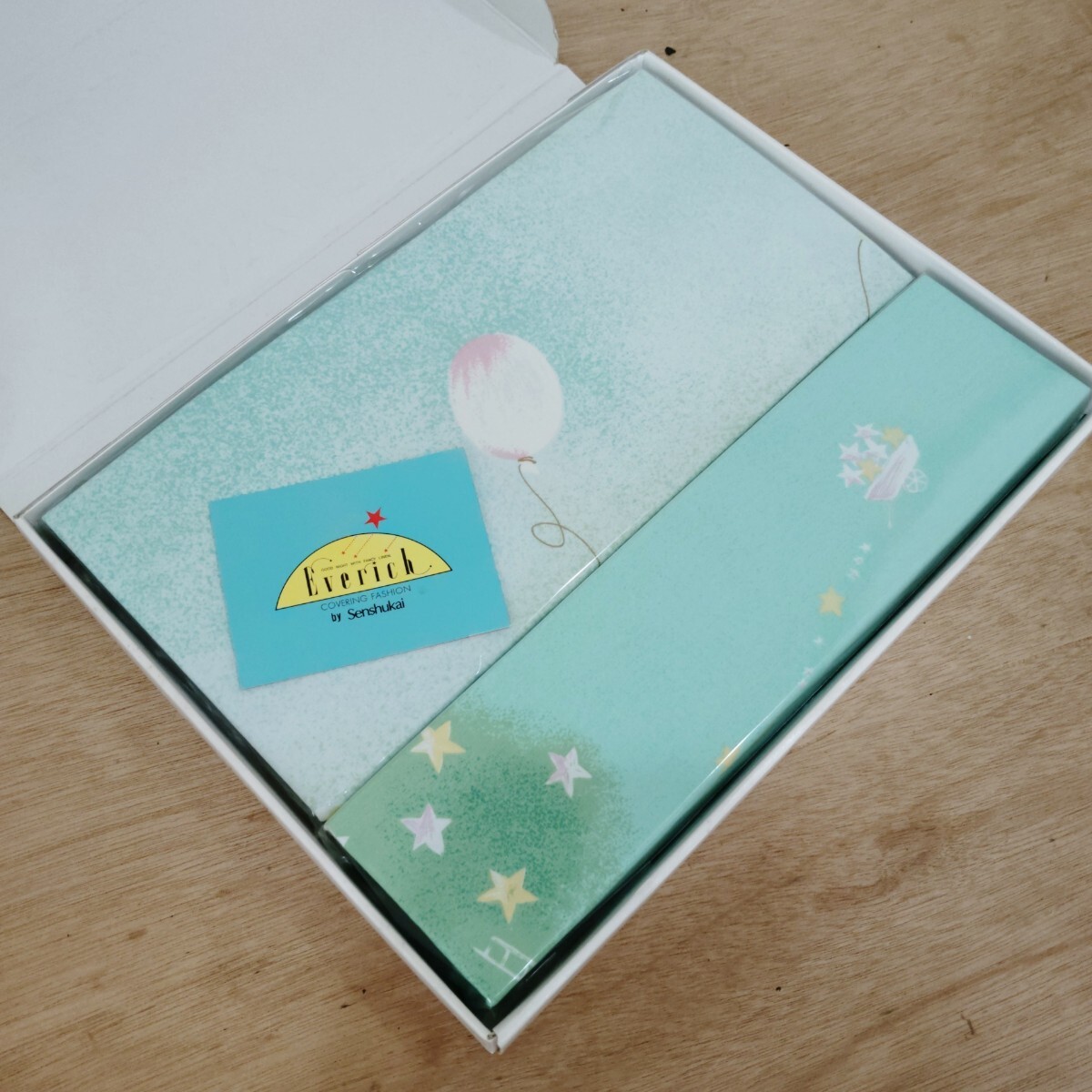 > ★未使用保管品★Everich イヴリッチ ピローケース カバーシーツ セット ポエットリー EVE 星柄 風船柄 グリーン No.1