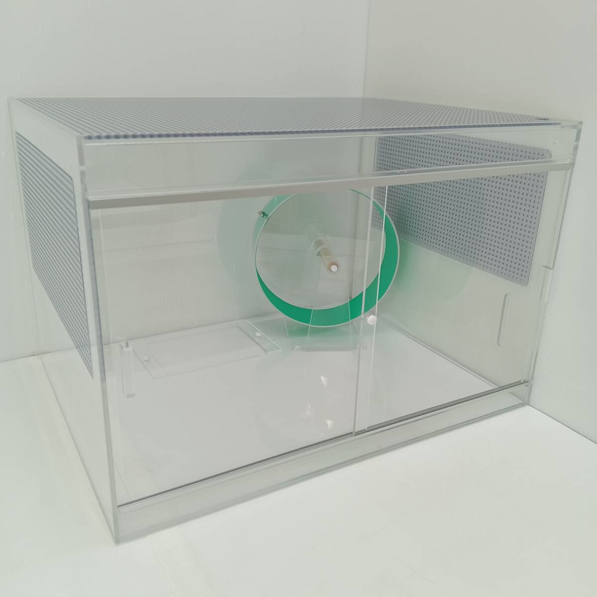 - 8k6279h4z未使用 飼育ケージ 45×60×40 アクリル製 回し車/ホイール付き ペット/小動物/爬虫類 飼育ケース アクリルケージ スライド扉仕様