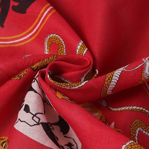 - ♪魑魅魍魎・龍・蜘蛛・カエル・ドクロ柄コットンブロードプリントパネル 1P=長さ45cm×10パネル 赤黄土黒柄 巾:115cm♪4.5m[3932]30P