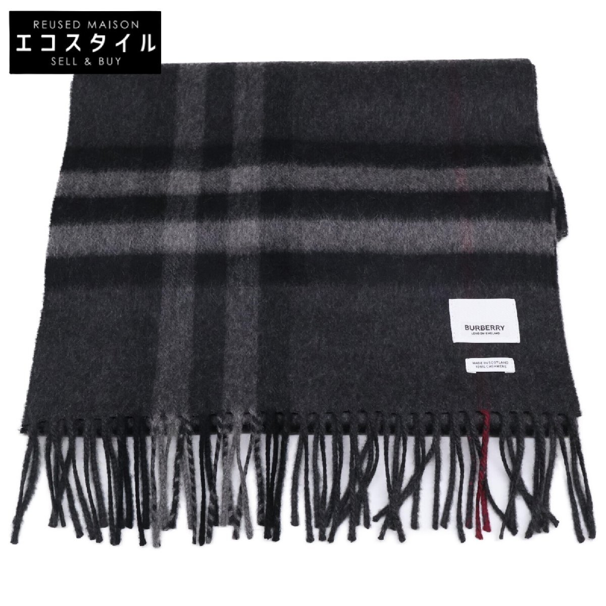 - 美品 BURBERRY バーバリー 8015538 クラシックチェック カシミヤ マフラー 168x30cm グレー系 メンズ