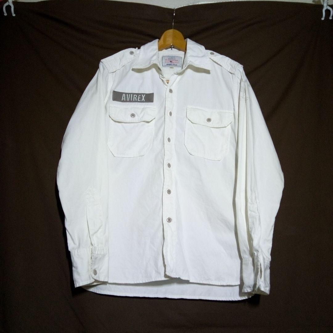 - AVIREXUSA アヴィレックス【M】メンズ ミリタリーワークシャツ 綿 白