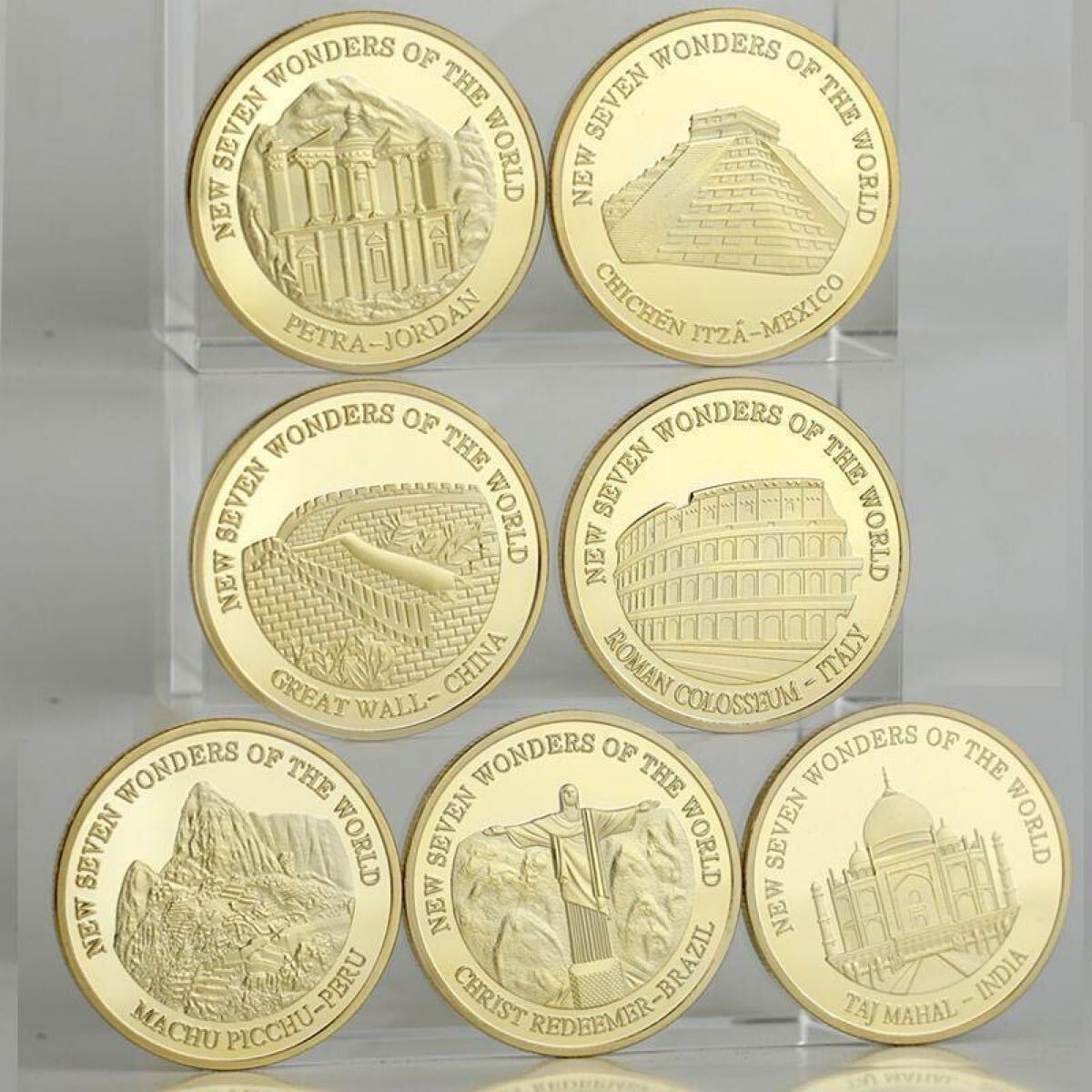 - 世界新七不思議 記念コイン メダルセット 2007年発行 7枚組 インテリア 観光名所 世界遺産 古代建築 海外記念品 ギフト コレクション 金貨