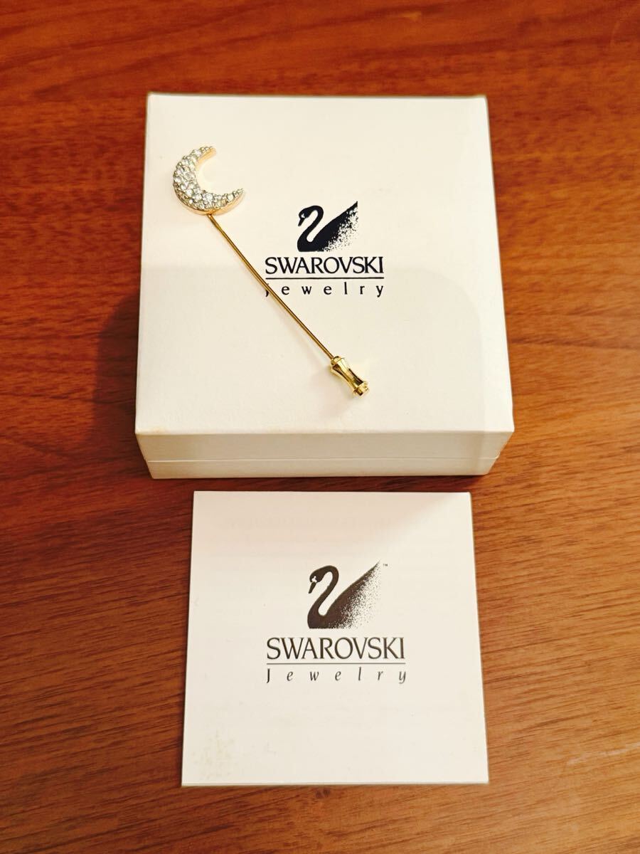 - SWAROVSKI 月 ハットピン ブローチ ゴールド 美品