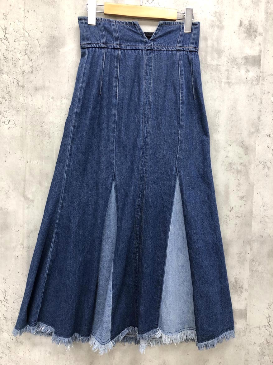> ゆうパケットOK MERCURYDUO マーキュリーデュオ 切り替え フレア 裾フリンジ マーメイド デニムスカート sizeM/青 ■■