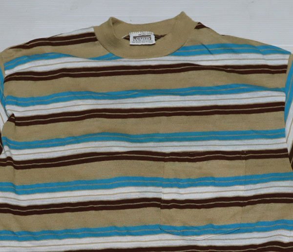 > ST38モンゴメリー ワードMONTGUMERY WARDアメリカ古着アメリカ製ポケットTシャツMボーダーTシャツ70’Sビンテージ綿タグ/オールドスタイル