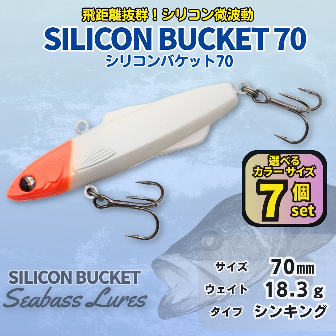 > 【送料無料】シリコンバケット 7個セット70㎜ 18g シーバスルアー シリテンバゲット好きに! ナチュラル静波動 シリコンバイブ シンペン
