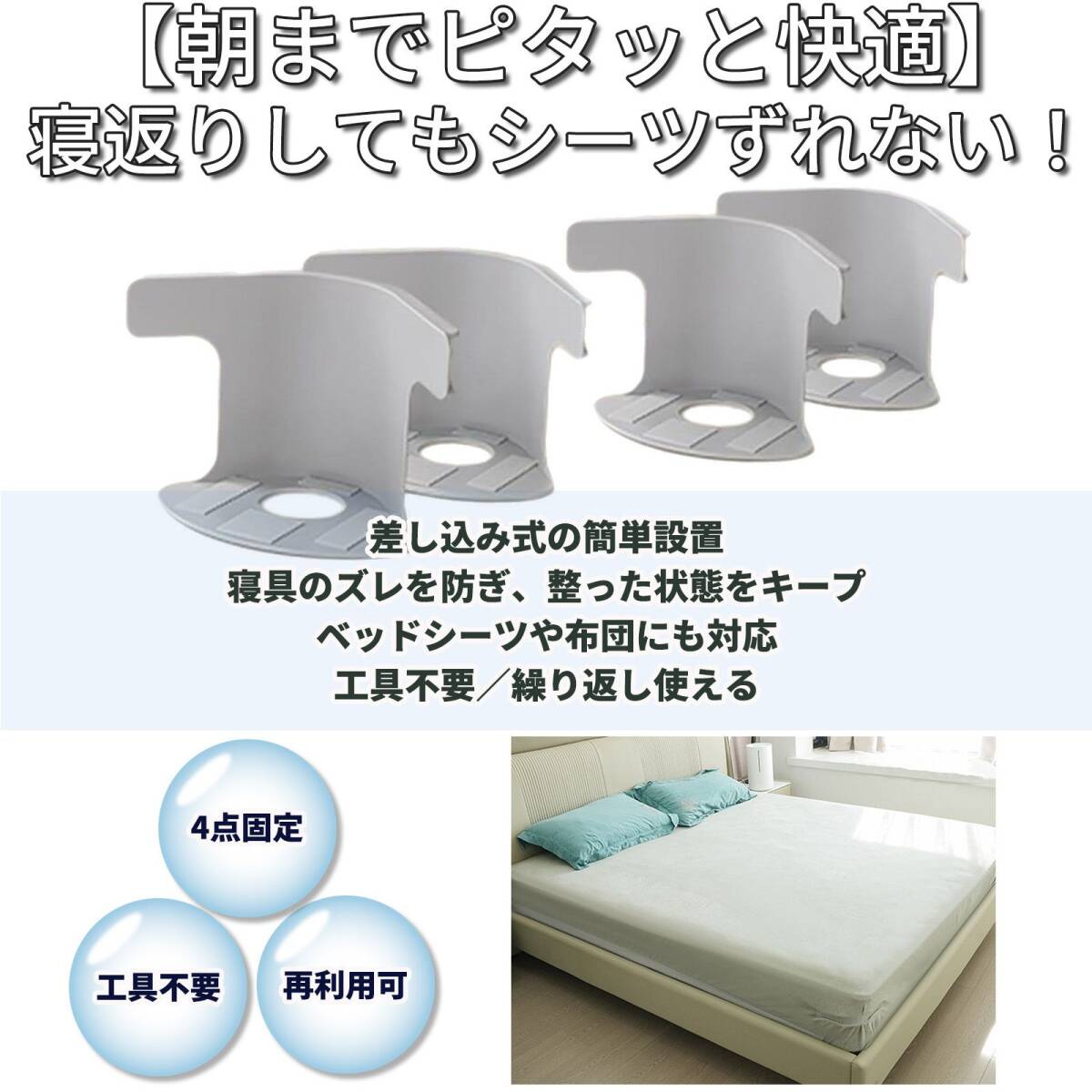 - ベッドシーツクリップ 4個セット 差し込み式 ズレ防止 シーツ固定 ずれない 白 シーツクリップ 布団滑り止め