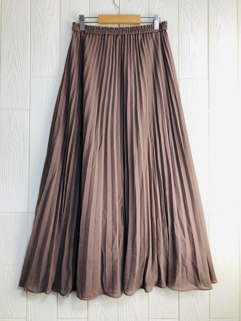 - ブラウン プリーツスカート ウエストゴム64cm丈85cm