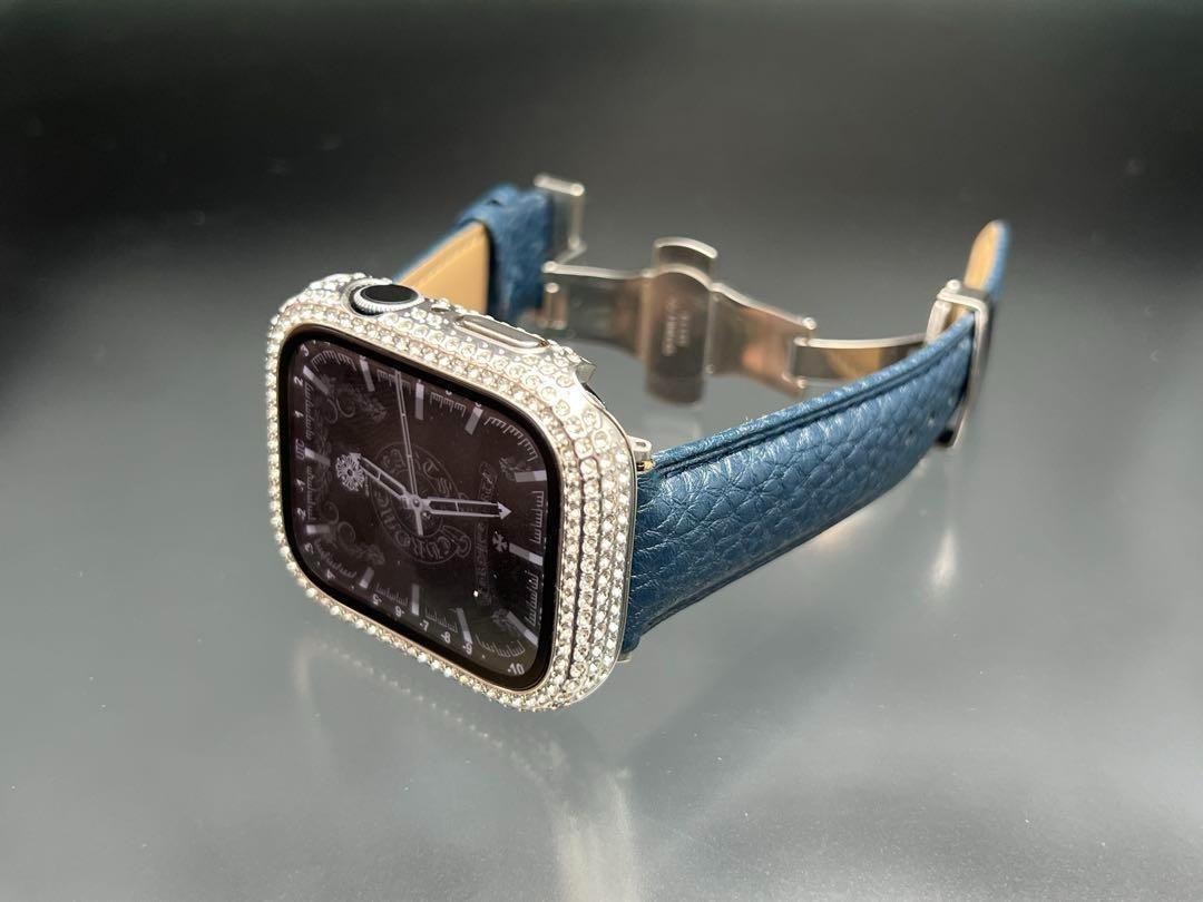 - アップルウォッチ cz ケース ブルー トゴ レザー 本革 ベルト 49mm 46mm 42mm 45mm 44mm 41mm 40mm ウルトラ シリーズ10