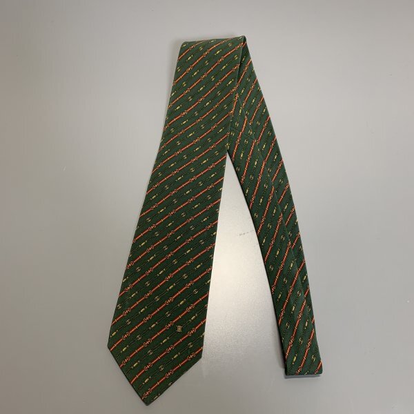 - 1円〜 CELINE セリーヌ ネクタイ 緑 総柄 シルク C4224