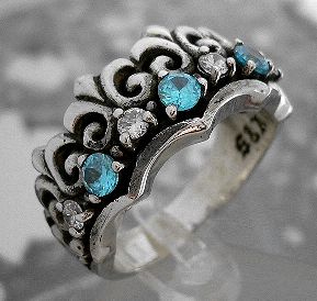 - シルバー925銀のブルージルコニア付フレア クラウン王冠リング/11号.13号.19号より/S&A silver