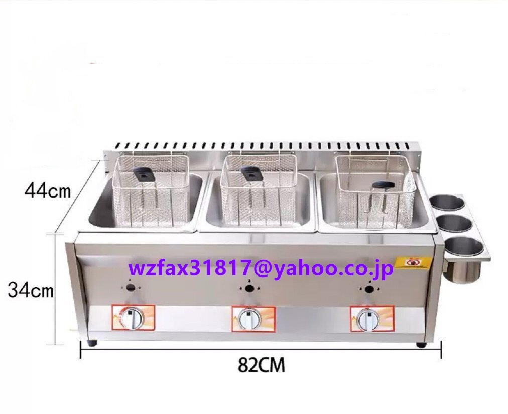 - 大型 ガスフライヤーダブルシリンダー フライヤー ステンレス鋼 揚げバスケット付き フライヤー LPガス用 (82*44*34CM )