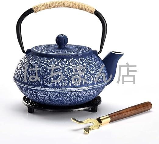 - 南部鉄瓶 桜 鉄器 急須 鉄製 鋳物 茶道道具 鉄分補給 ガス 電気コンロ 炭火 ih調理器 直火 対応 伝統工芸品 1L (ブルー)