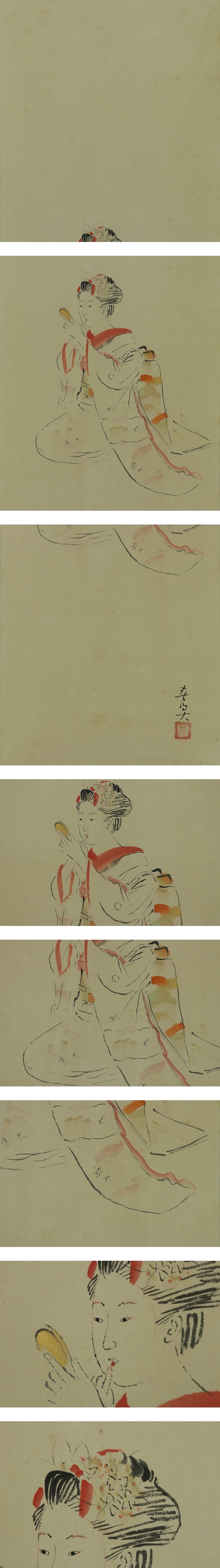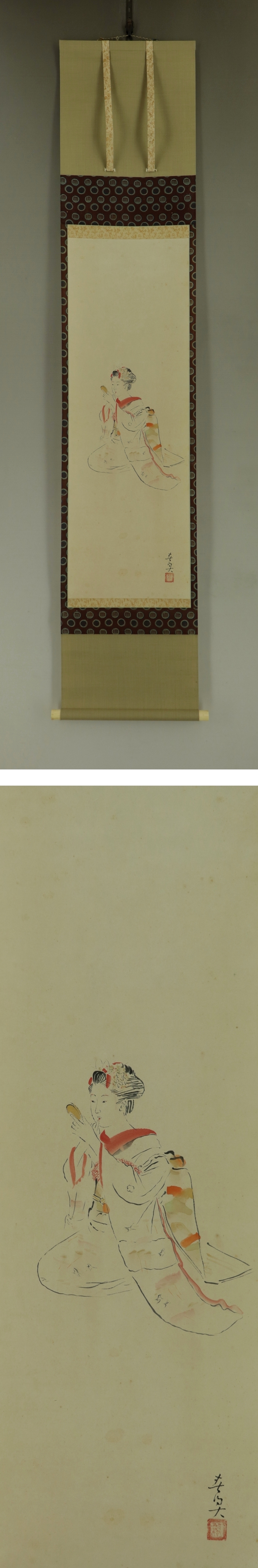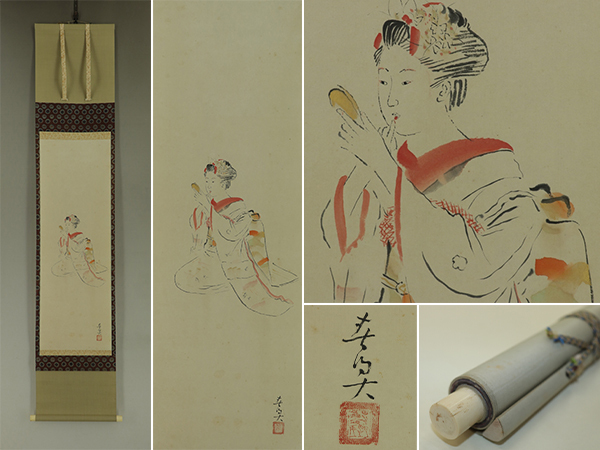 - 【模写】立石春美【朱唇】◆紙本◆共箱◆掛軸 s04054