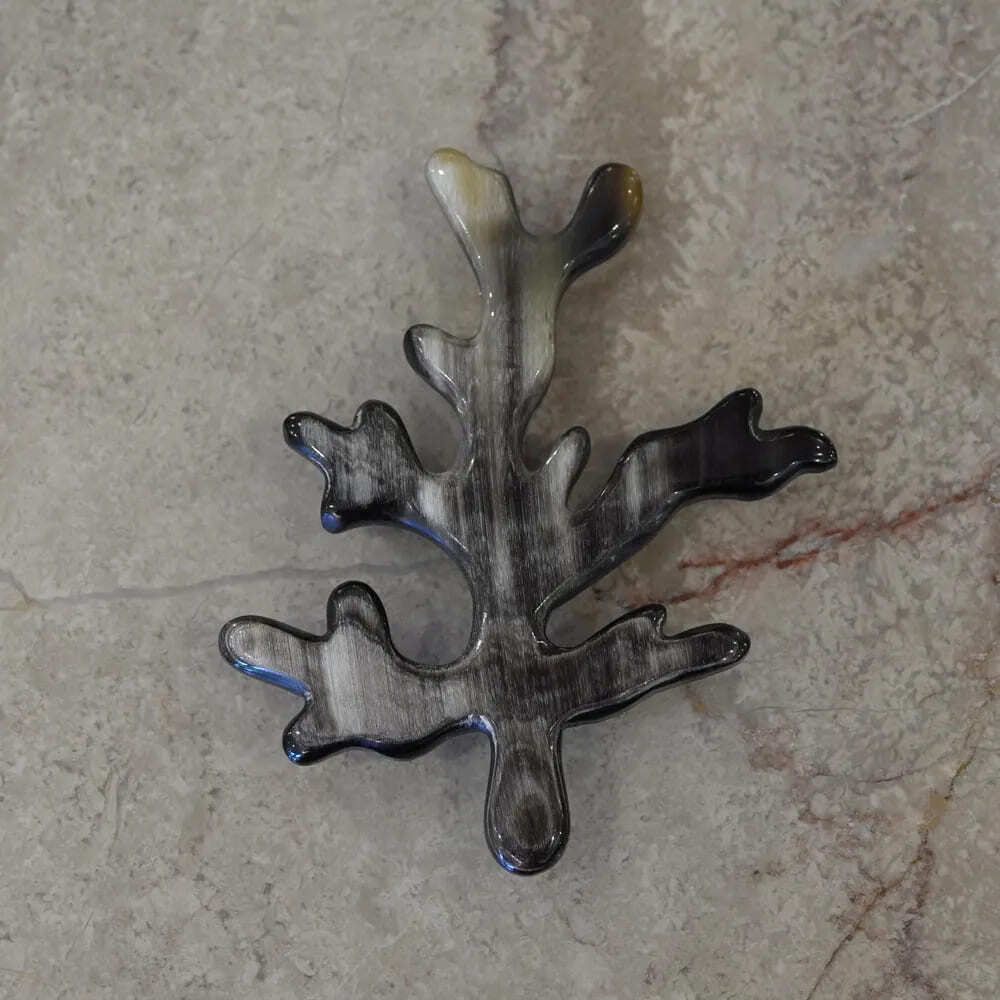 - 【装いを”アーティスチック”にしてくれるブローチ】ピンバッジ珊瑚サンゴモチーフ水牛角ホーン黒ブラック一点ものモダンファッションパリ