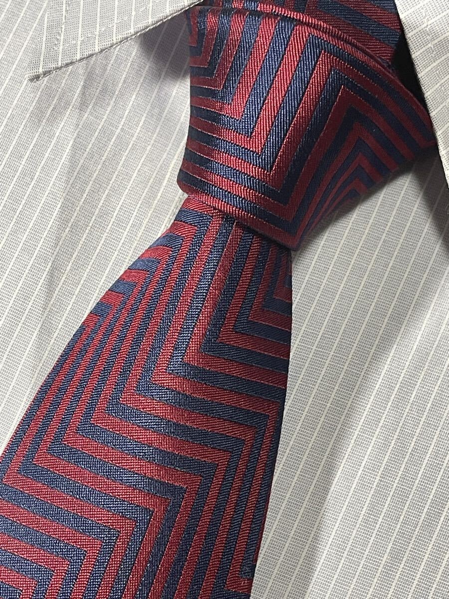 - ほぼ未使用 ″HENRY POOLE″ ヘンリープール シェブロン ブランドネクタイ 508004
