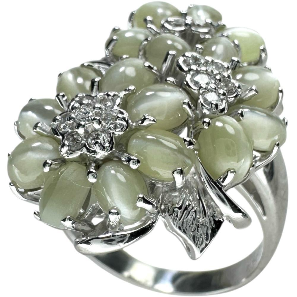 - 12.5号 クリソベリルキャッツアイ 5.04ct ダイヤモンド 0.12ct リング・指輪 K18WGホワイトゴールド 9.4g レディース