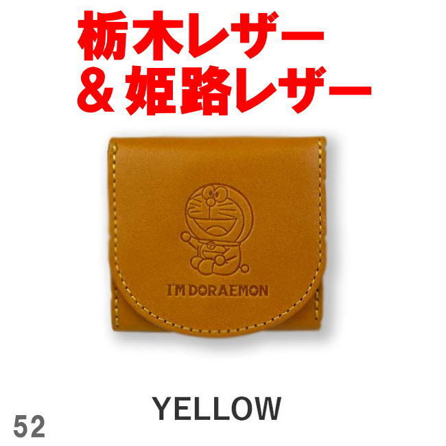 - イエロー 日本製 栃木レザー×姫路レザー ドラえもん ボックス型 小銭入れ 本革 dor-52
