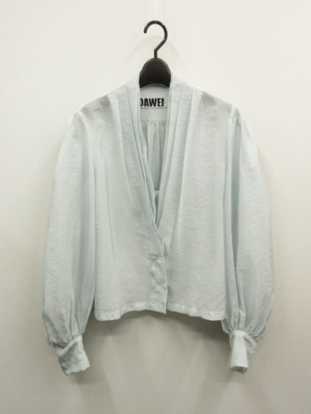 - ダウェイ DAWEI ★ ナイロン混 タック 光沢 デザイン 長袖 ブラウス ★ サイズ34