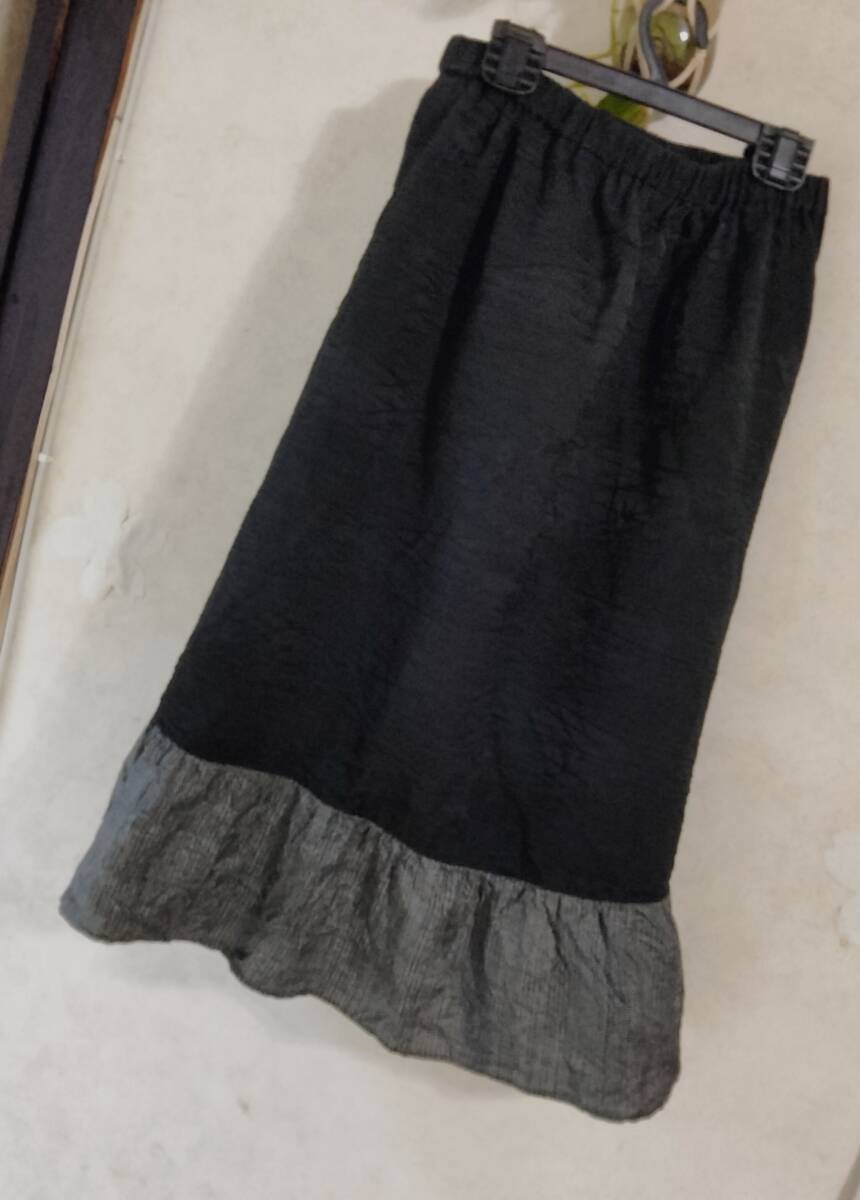 - ハンドメイド【着物リメイク】スカート M L フリーサイズ ブラック 黒