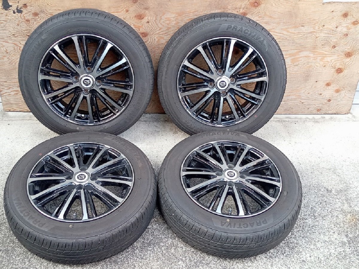 ■B-2151■6~7mm山■2023年■Weds Fang GYCE■15x5.5J PCD 100 4H +42■アルミ ラジアル■ブラックポリッシュ■PRACTIVA■175/65R15■アクア ヴィッツ ノート キューブ デミオ