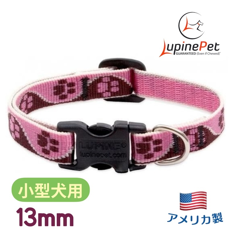 > ティクルドピンク柄 小型犬向けワンタッチ首輪13mm幅XSサイズ 15-22cm LUPINE アメリカ製 軽量丈夫 ルパイン Tickled Pink