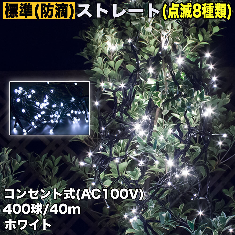 > クリスマス 防滴 イルミネーション ストレート ライト 電飾 LED 400球 40m ホワイト 白 8種類点滅 Aコントローラセット