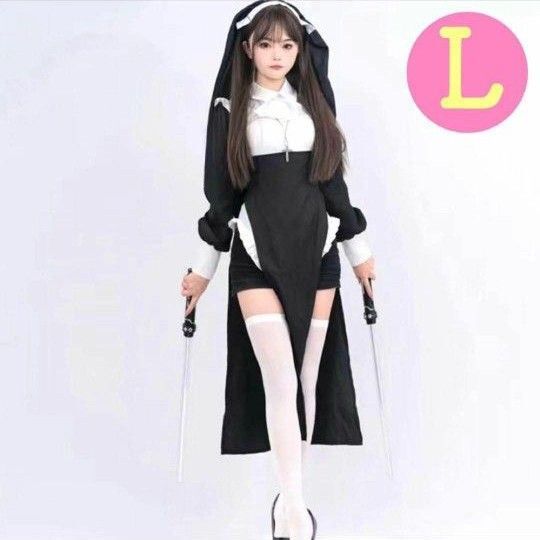 - Lサイズ シスター コスプレ7点セット セクシー 修道院 ハロウィーン ハロウィン 仮装 マリア レディース 衣装一式 新品未使用