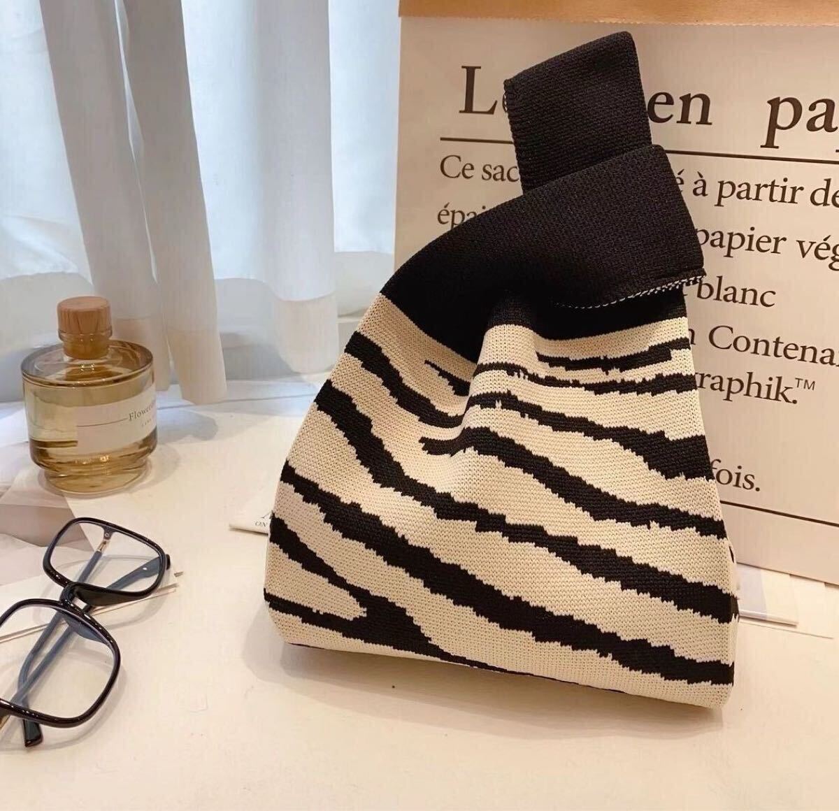 - ニット編み ミニバッグトートバッグ レディース ハンドバッグサブバッグ軽量 ゼブラ