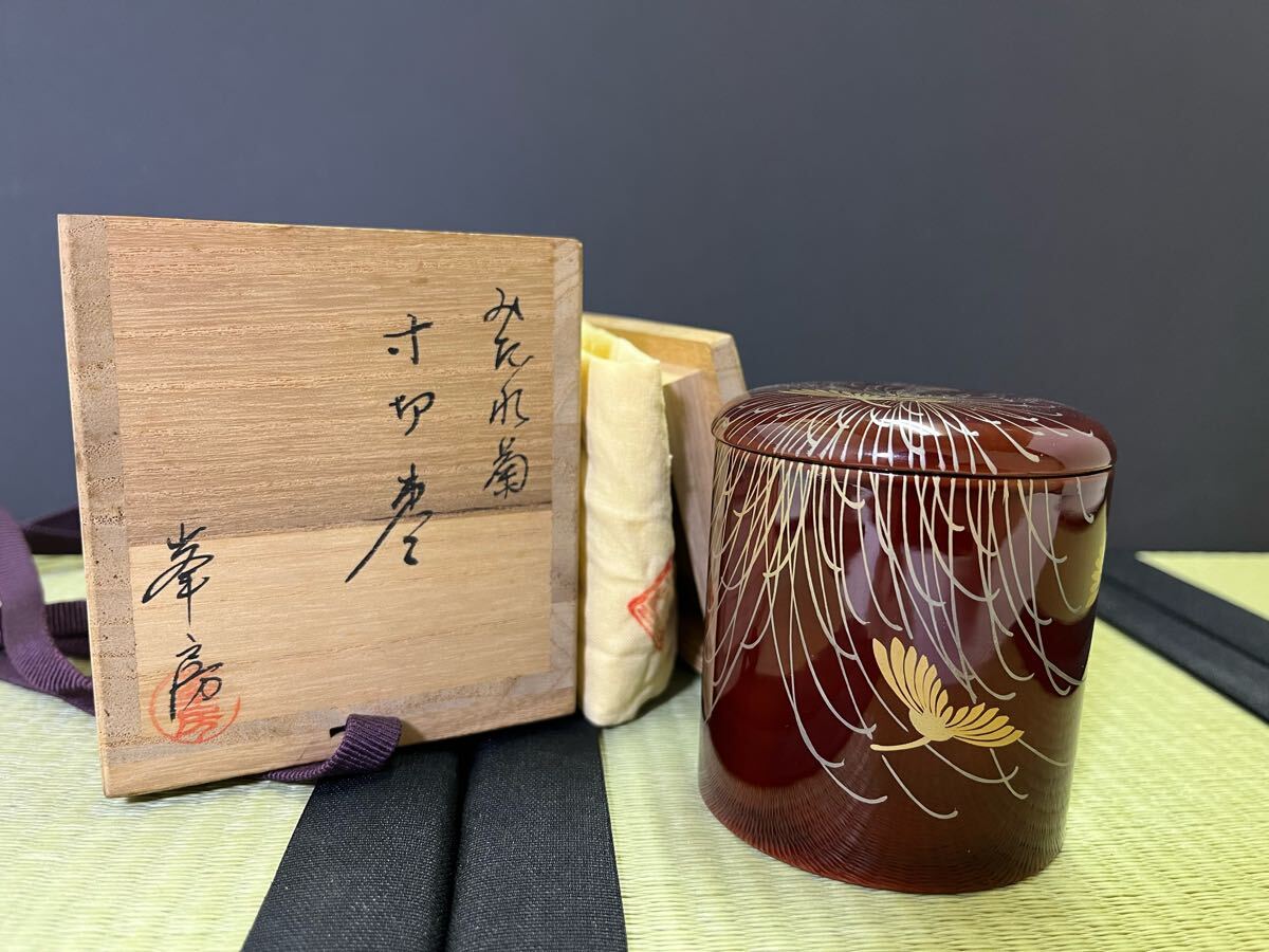 - 高橋峯房 みだれ菊 寸切棗 蒔絵 共箱 茶器 茶道具 漆器