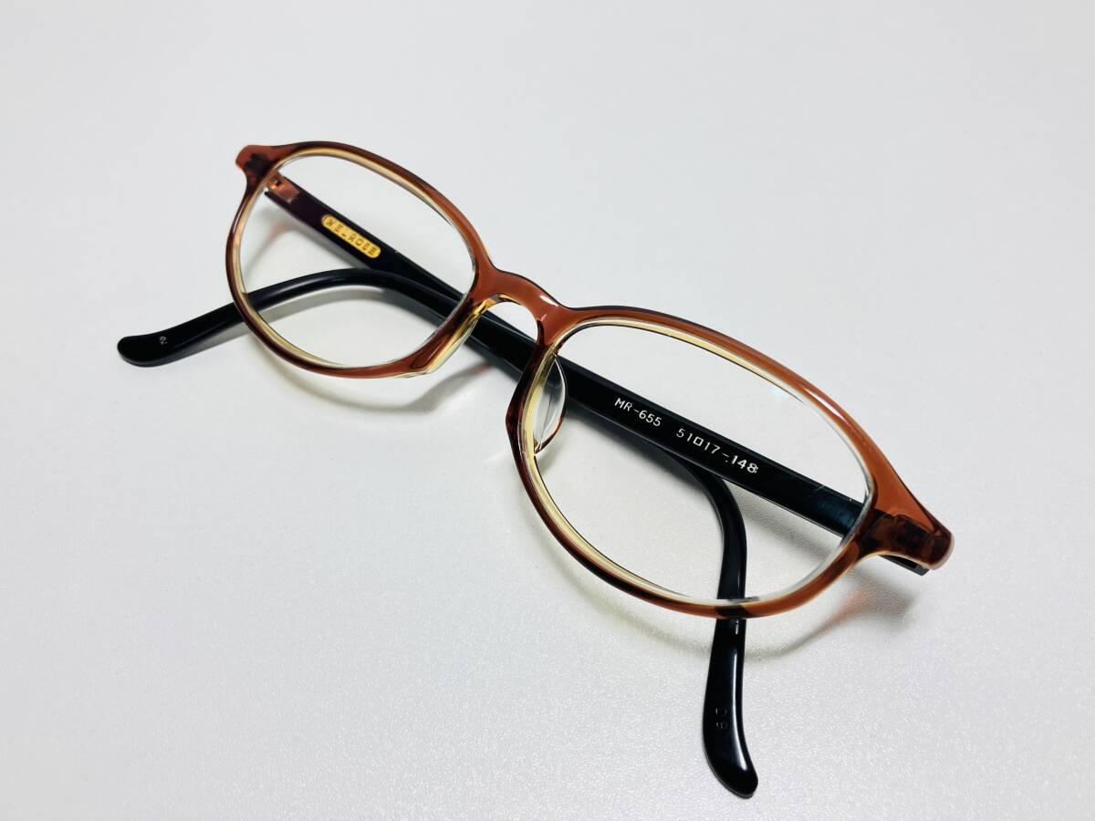 - 08◆MELROSE MR-655 メルローズ アイウェア セルフレーム クリアブラウンxブラック グラデ ビンテージ 眼鏡 程度良品