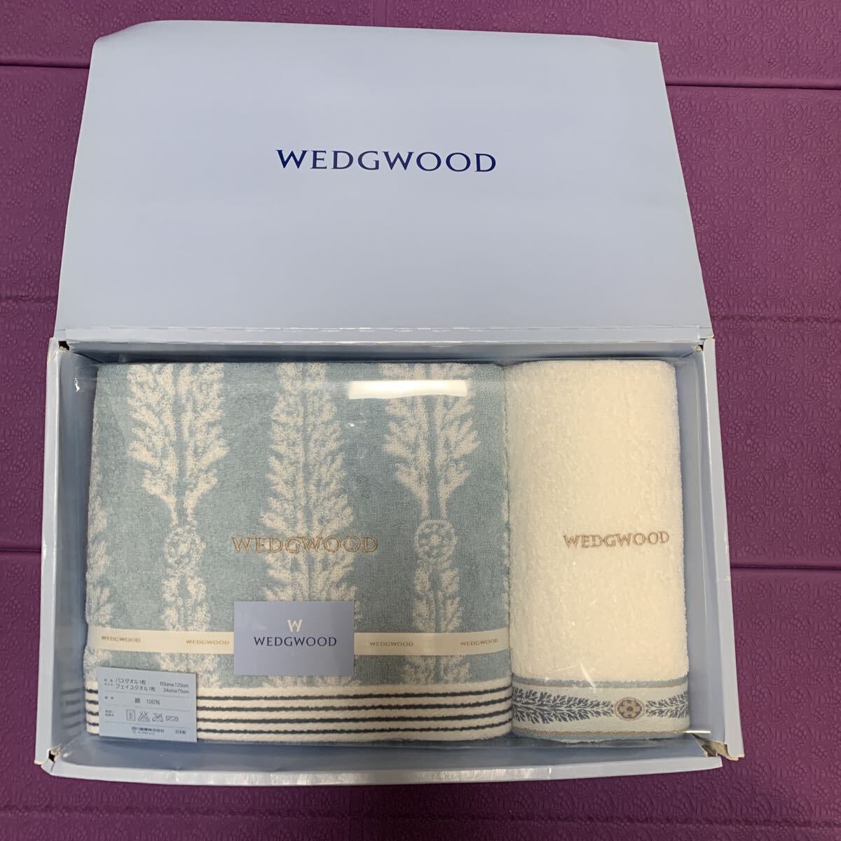 - 新品未開封未使用品 WEDGWOOD フェイスタオル1枚バスタオル1枚セット樹木柄