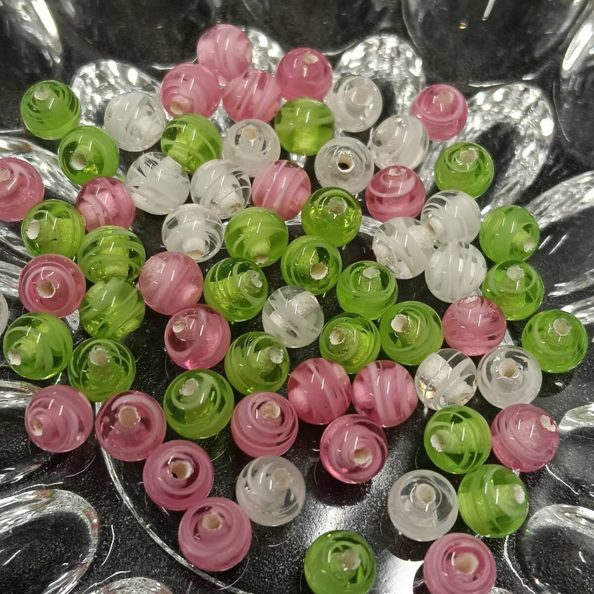 > ☆未使用 大量 チェコ ガラスビーズ 20g 6m ラウンド 黄緑 白 ピンク 大粒 ヴィンテージ パーツ アクセサリー ネックレス B-259