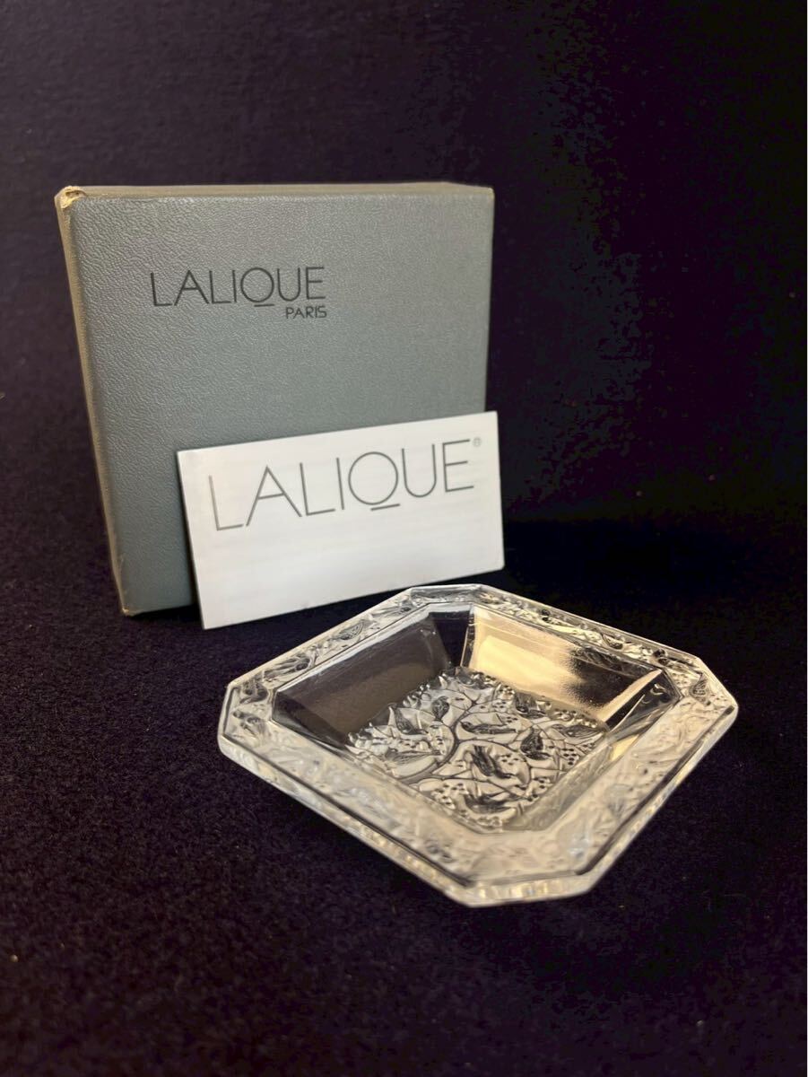 - 未使用品 ラリック LALIQUE ピントレイ 小物入れ スクエアプレート 小皿 純正箱つき 廃盤 希少 レア