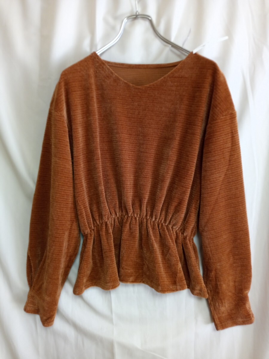 - 13214 ★★ ベルベットワッフル ウエストギャザー入 へプライムトップス 茶